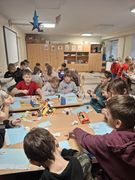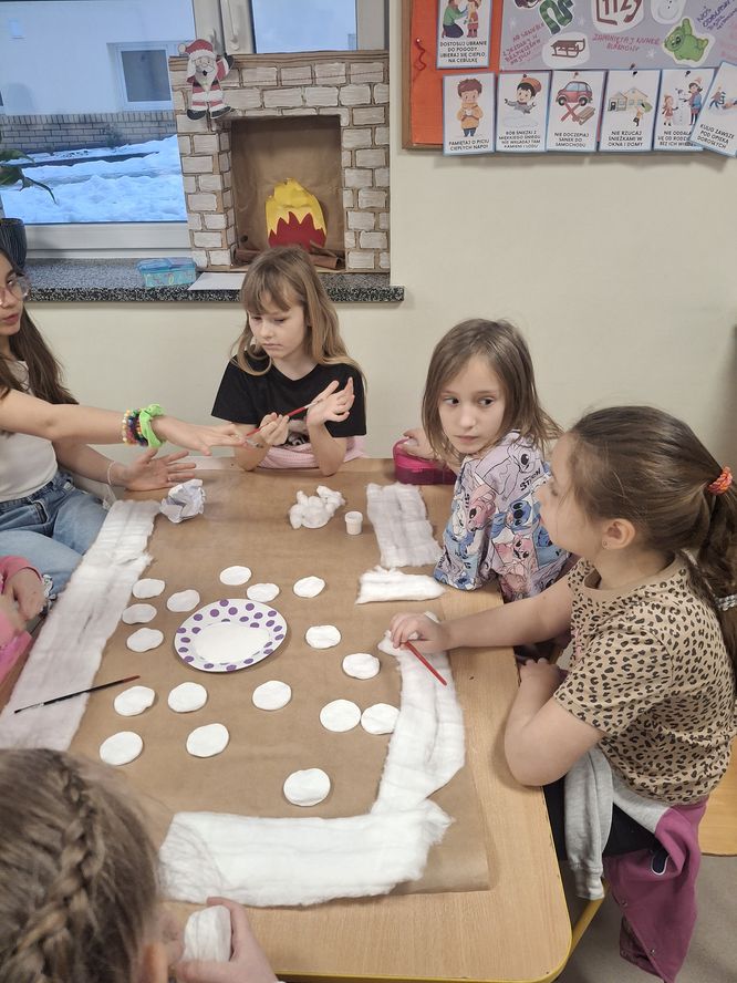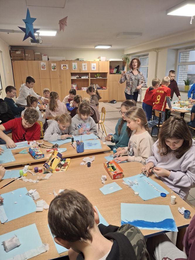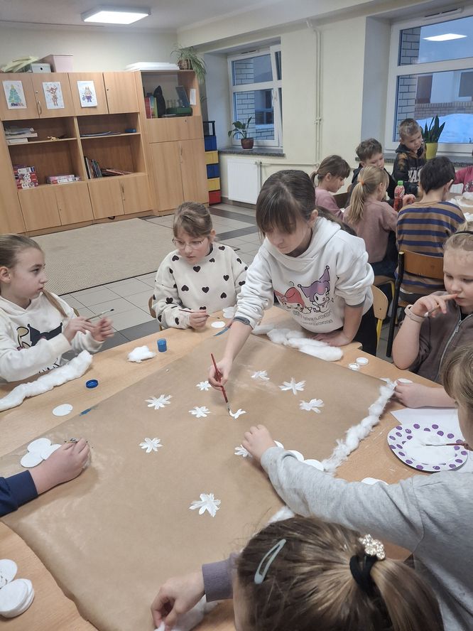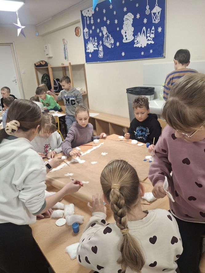 W czasie ferii odbywały się także zajęcia plastyczne i techniczne, podczas których uczniowie rozwijali swoją kreatywność, zdolności manualne oraz wyobraźnię. Powstało wiele ciekawych prac, które dzieci chętnie prezentowały kolegom i koleżankom.