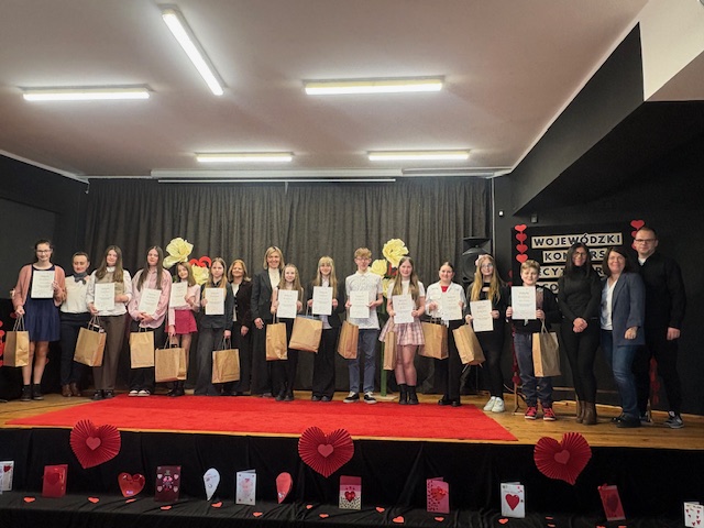 Dnia 06 marca 2026 r. w Sali Widowiskowej Szkoły Podstawowej im. Kornela Makuszyńskiego w Kobylnicy po raz 15. odbył się finał Wojewódzkiego Konkursu Recytatorskiego Obcojęzycznej Poezji Miłosnej.
