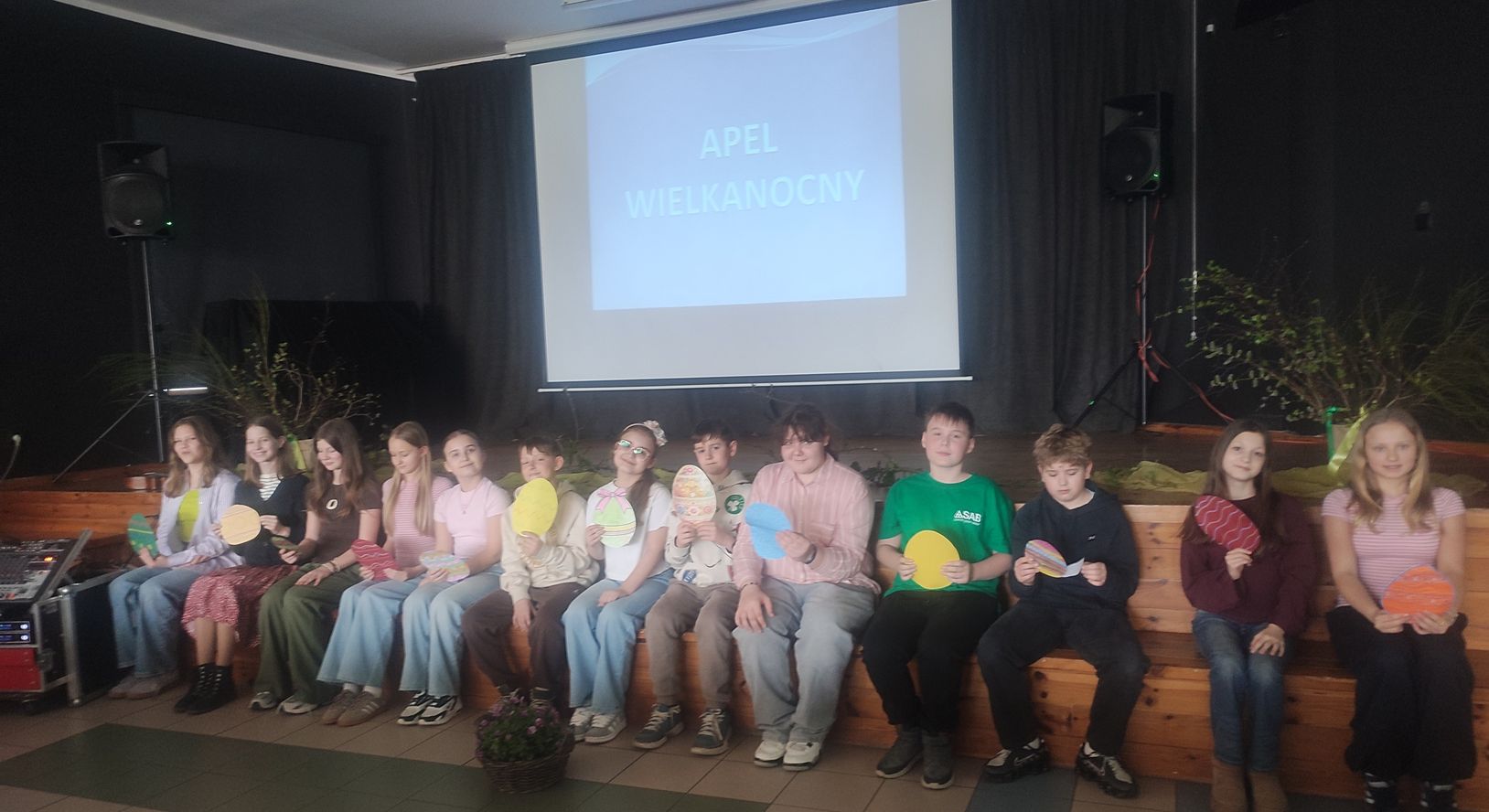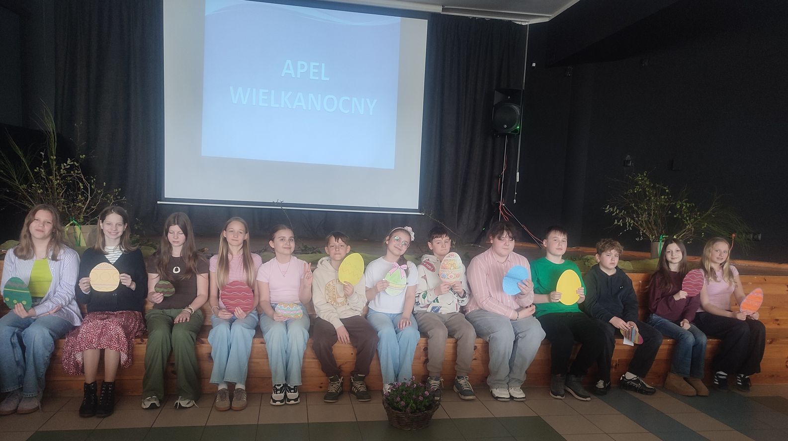 31 marca br. w naszej szkole odbył się uroczysty Apel Wielkanocny. Uczniowie przygotowani przez nauczycielkę katechezy, panią Joannę Cybulską, przybliżyły zebranym znaczenie Świąt Wielkanocnych. Piąto- i szóstoklasiści zapoznali się z historią i obowiązkami świątecznymi. W prezentowanych treściach uczniowie mogli zobaczyć zwyczaje i tradycyjne potrawy oraz obrzędy. Wszyscy uczestnicy wsłuchiwali się w piękny śpiew, a także grę na ukulele w wykonaniu Julii Ernestowicz.